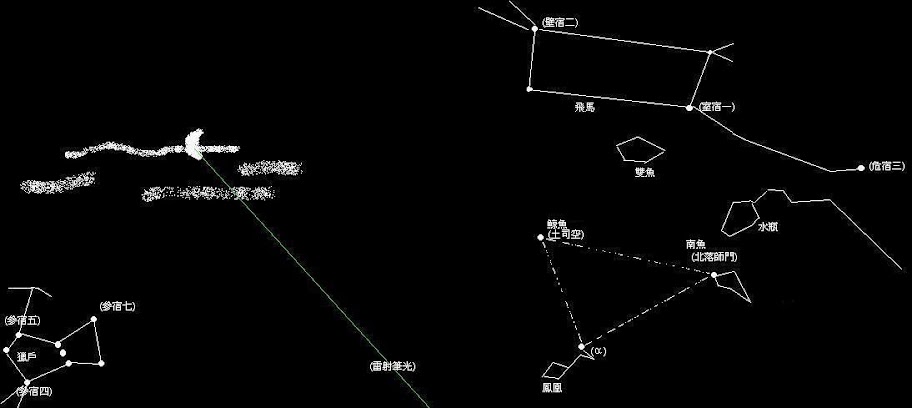 睡不著, 拿著雷射筆找星座, 老人家都說指月亮會被嫦娥割耳朵